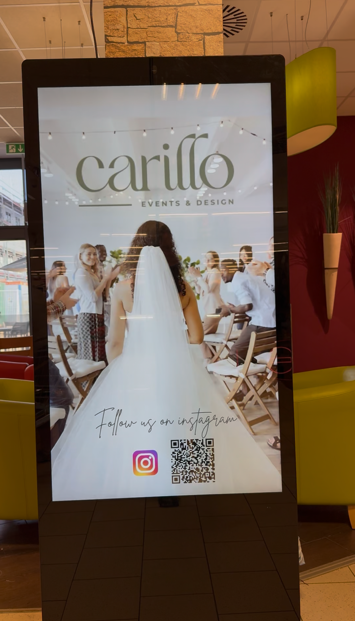 Direkt gegenüber Kassen und Café-Sitzbereich – Sichtbarkeit beim Bezahlen, Warten und Verweilen.
